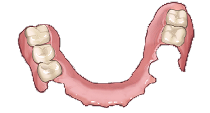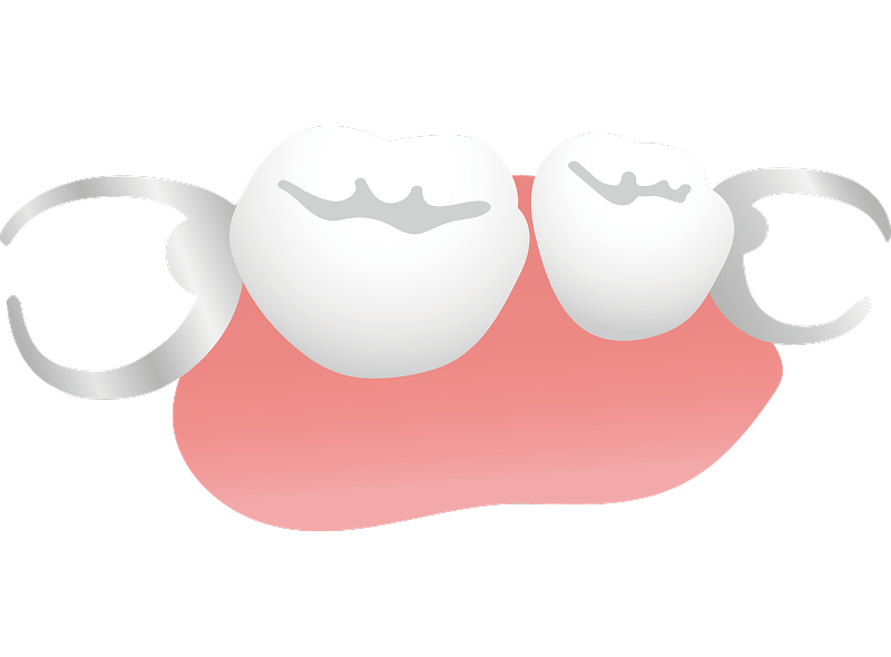 まだ残っている歯にバネや装置をかけて使う部分的な入れ歯です。数本の歯を失った場合に用いられます。