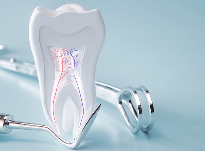 私たちの歯は、歯根(歯の根っこ)が顎の骨にしっかり支えられ、その上に歯冠(歯の見えている部分)がある構造をしています。この歯根があることで、噛む力を骨に伝え、歯が長持ちします。
