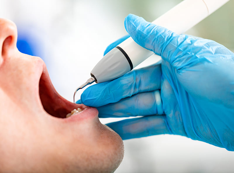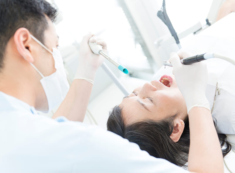 専用の器具で、歯の表面や歯と歯ぐきの間に付着した歯石・プラークを丁寧に取り除きます。
